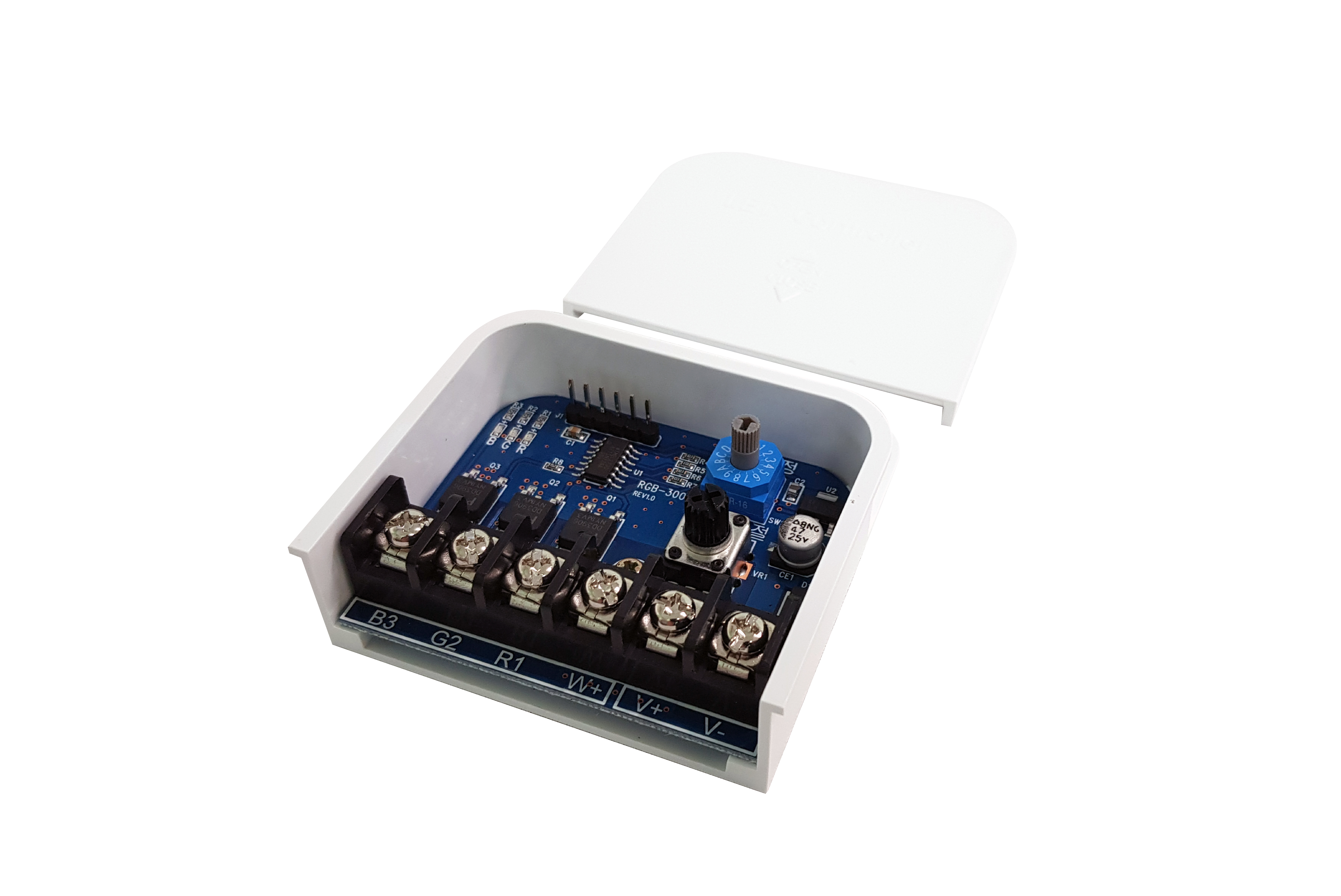 - Up to 300 RGB modules, 100 white modules per circuit (total of 300)